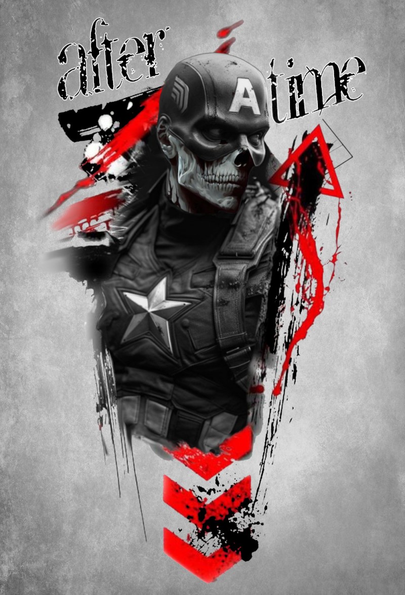 La leyenda del héroe trasciende el tiempo. Un diseño épico que presenta una calavera con el traje de un icónico capitán. El contraste del gráfico en blanco y negro con los splatters rojos sobre el fondo caqui crea un look intenso y moderno.