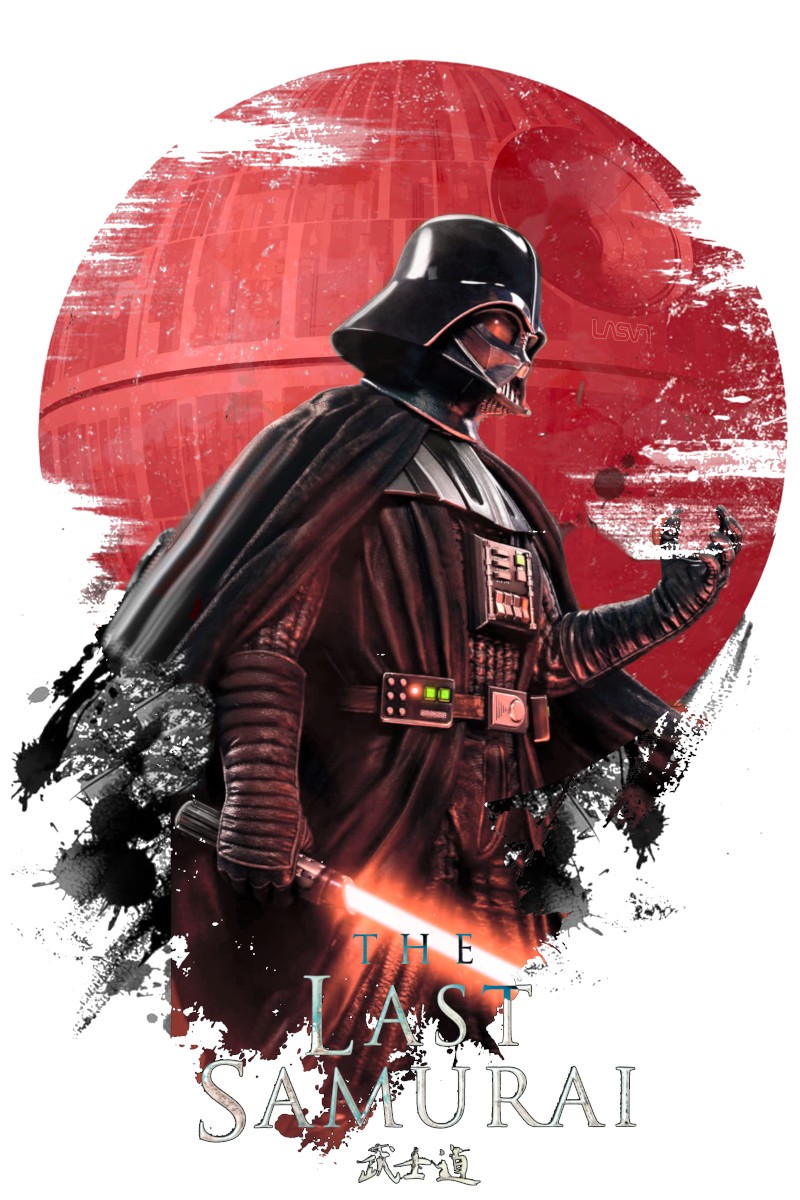El Lord Sith se convierte en un guerrero de honor. Este diseño épico fusiona un ícono de la ciencia ficción con la estética Samurai, destacando el sol naciente en rojo intenso sobre el negro profundo. ¡Estilo legendario, para el Lado Oscuro!