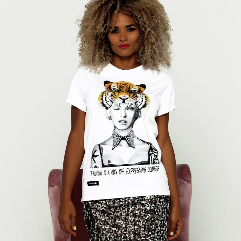 Camiseta Unisex Be Happiness Linda Evangelista blanca