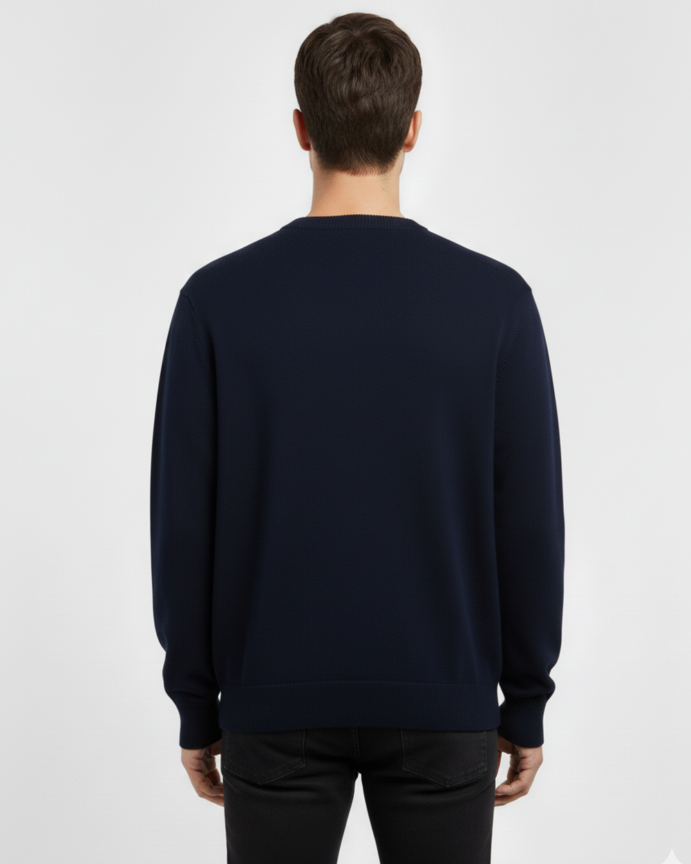 Comodidad clásica con calidez transpirable. Este jersey de cuello redondo de algodón merino ofrece un corte regular, perfecto para usar en capas y para el día a día en cualquier temporada.
